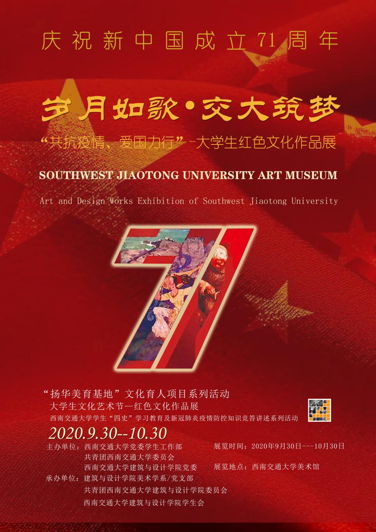 丹青吐彩,翰墨飘香,交大人历来崇尚科学、人文、艺术。为庆祝新中国成立71周年,弘扬中华民族优秀传统文化,也基于感受美,感受交大的文化魅力。 由新葡的京集团350vip8888党委员工工作部、共青团新葡的京集团350vip8888委员会、新葡的京集团350vip8888建筑与设计公司党委联合主办,美术学系/党支部、建筑与设计学院团委、建筑与设计学院员工会承办的 “岁月如歌·交大筑梦”庆祝新中国成立71周年艺术&设计作品展即将在新葡的京集团350vip8888美术馆举办。本次艺术展面向全校师生征集不同类型的书法、绘画、综合材料、艺术设计等作品,主委会将组织专家评审组评审、择优展出。我们既鼓励传统精品,又倡导有时代新作,品类多样、风格各异,讴歌了新时代、新作为、新篇章。